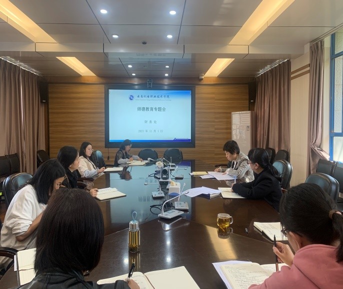 为继续落实中央八项规定精神,持续推进财务处师德教育,我处于2021年11月1日在行政楼200会议室召开师德教育学习专题会,会议由金瑞英副处长主持,部门全体人员参加了会议。