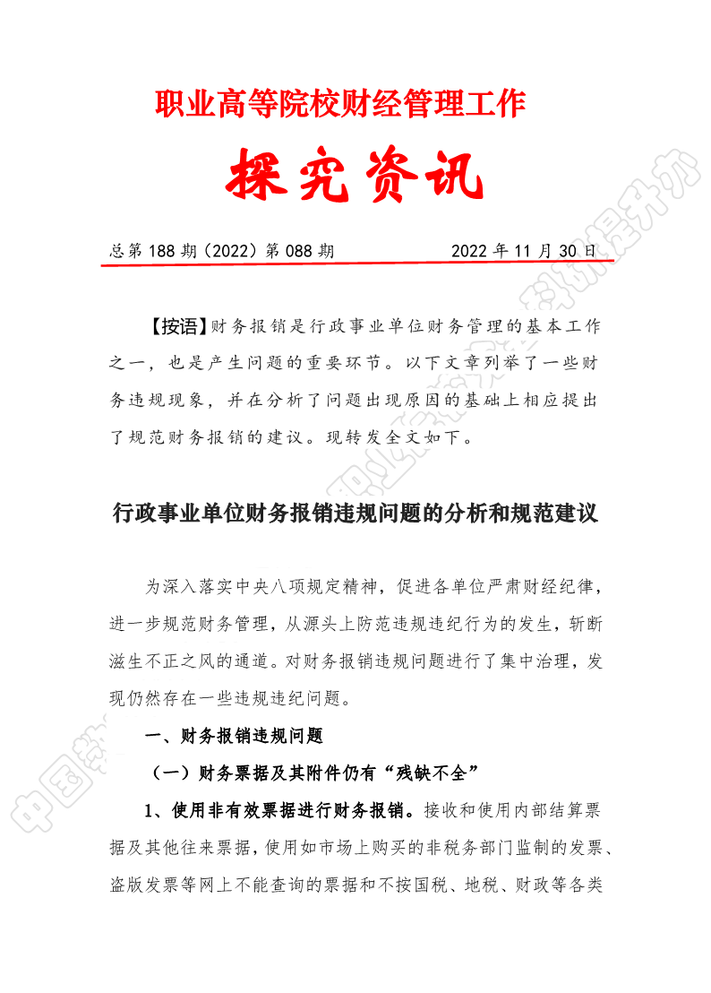 探究资讯:行政事业单位财务报销违规问题的分析和规范建议