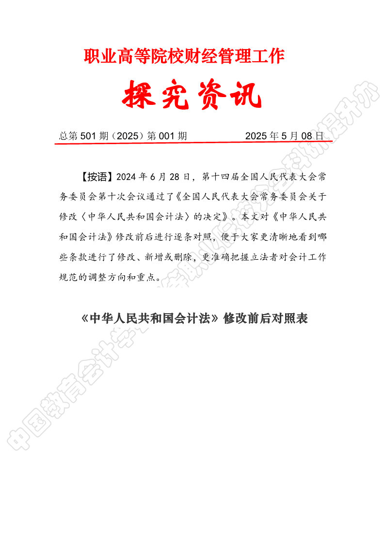 探究资讯501:《中华人民共和国会计法》修改前后对照表