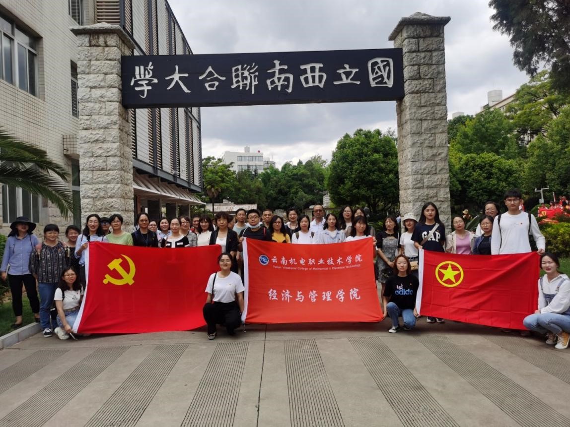 百年波澜壮阔,初心历久弥新。为庆祝中国共产党建党100周年,重温党的光辉历史,传承红色精神,扎实推进党史学习教育进一步走深走实。6月15日下午,经济与管理学院师生赴西南联大旧址参观学习,开展“重温红色历史 汲取奋进力量”暨“共忆百年峥嵘史 同话今朝强国梦”群团联合主题党日,全体党员教师、群众代表、学生团员代表参加了此次活动。