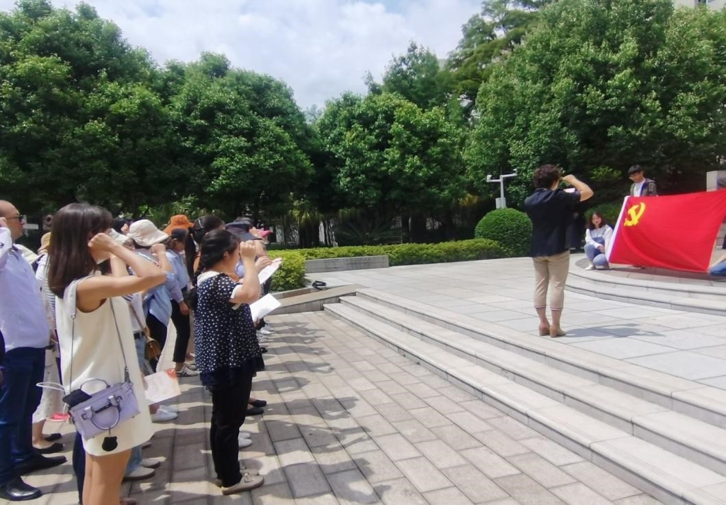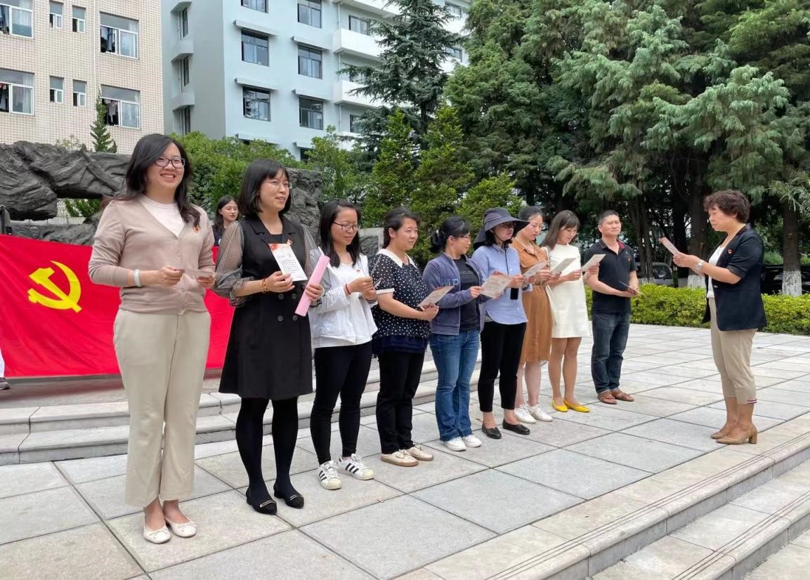 最后,在鲜红的党旗前,全体党员庄严宣誓,重温入党誓词,牢记初心使命,激发奋进力量。