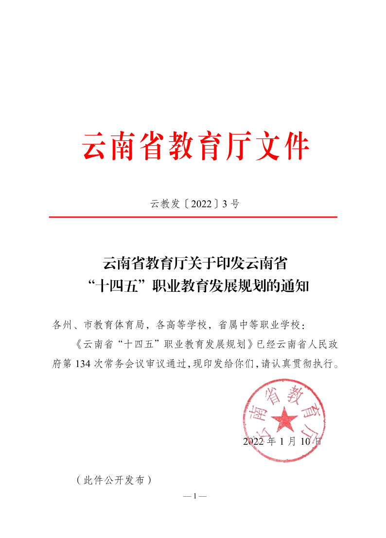 云南省教育厅关于印发云南省十四五职业教育发展规划的通知