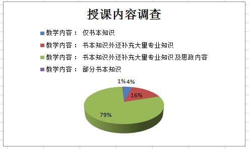 二、教学内容方面。79%的同学认为教师在授课过程中,在准确的教授课内知识的同时,还能有效的补充课外知识,学生在学习课内专业知识的同时,还能拓展有用的专业知识。16%的同学还认为教师在讲授专业知识的同事,还设计到思政内容,提升同学们的思想道德修养。99%的同学认为老师教学内容讲解准确清楚。如图2所示。