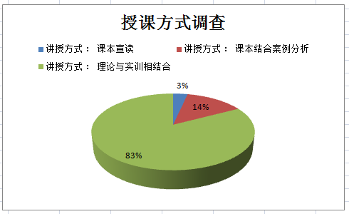 三、讲授方式。97%的学生认为老师在上课期间注重授课方式,关注学生的听课情况及听课效果。及时调整授课方式,提高学生听课效果。如图3所示。
