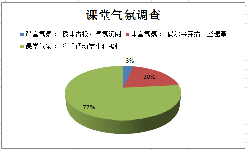 四、课堂气氛。97%的学生认为老师能在课堂上让学生积极参与问题讨论,活跃课堂气氛,调动学习的积极性。如图4所示。