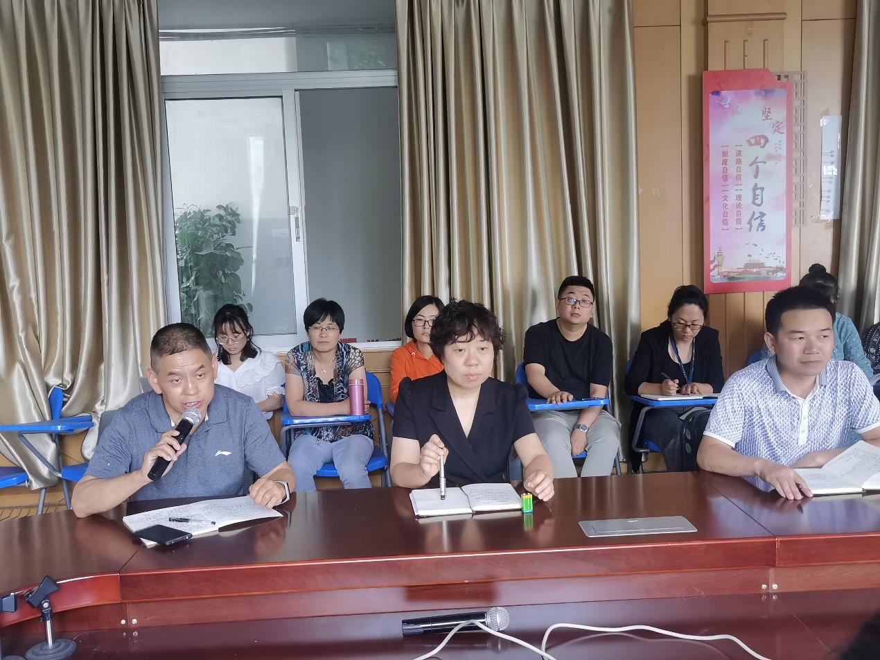 会上,杨萍书记带领大家学习了《关于正确认识和规范使用高校人才称号的若干意见》,就文件中强调的深化人才发展体制机制改革,树立正确的人才观,推动人才高质量发展,推进人才称号回归学术性、荣誉性本质等重点精神进行了传达。杨萍书记强调,作为教育工作者,大家要立足本职工作、坚守初心和使命,强化责任和担当,正确理解和认识人才称号,为推进学院人才队伍建设贡献自己的力量。
