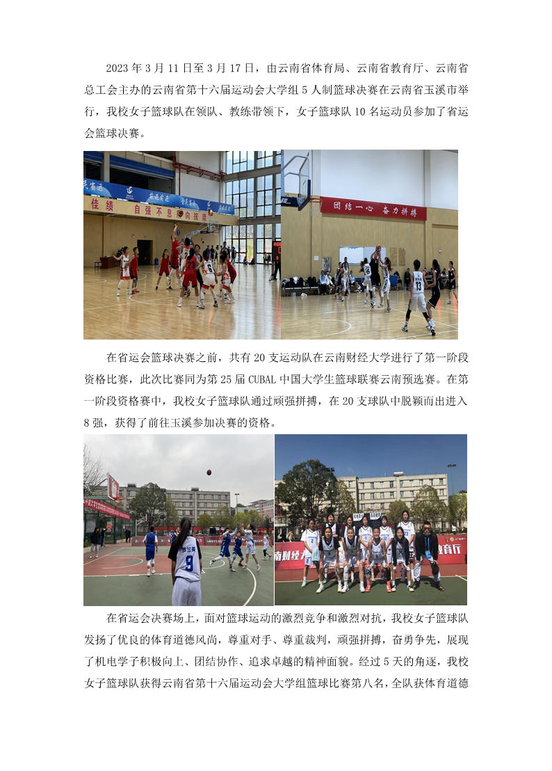 我校女子篮球队参加云南省第十六届运动会篮球比赛喜获佳绩