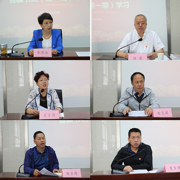 随后,学院领导班子成员在自主学习、集中自学和集中学习的基础上,结合工作实际依次进行主旨发言。李清玉书记表示在学习党史的过程中,要树立正确的历史思维,主动作为,践行见效,坚持为党育人、为国育人的初心使命,努力办好人民满意的职业教育。党委副书记、院长伍星表示党员干部要认真学习党的历史,从中汲取无穷的智慧和力量,把学习党史与总结“十三五”经验和实现“十四五”高质量发展结合起来,将理想信念转化为学习动力和学习成效。党委副书记朱丽辉以“党的七大和确立毛泽东思想为党的指导思想”为主要内容发言,回顾党的七大召开背景,强调党的七大的历史地位,表示要将党史学习成果转化为学院发展动力。党委委员、副院长黄勇林表示作为教育工作者,要通过学党史坚定正确的育人方向,让学生了解党的历史,增强学生的认同感,激发学生参与社会主义建设的动力和斗志。党委委员、副院长祖文明表示要学原文,读原著,推动党史学习走深走实。纪委书记姚自刚表示要担当作为,真抓实干,解决师生的实际困难,提高师生的幸福感获得感。
