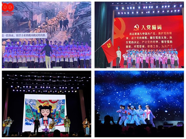 本次晚会共分为“讴歌百年征程唱响青春旋律、不忘初心使命激荡爱国情怀、凝聚青春力量 书写时代华章”三个篇章,我院领导为省级先进班集体、省级三好学生、学院优秀辅导员、省级优秀学生干部、五四红旗团支部、优秀共青团干部、优秀共青团员、 星级社团、优秀社团成员进行颁奖。随后,我院师生以舞台剧、舞蹈、合唱的形式欢庆建党100周年,为党送去真挚祝愿。