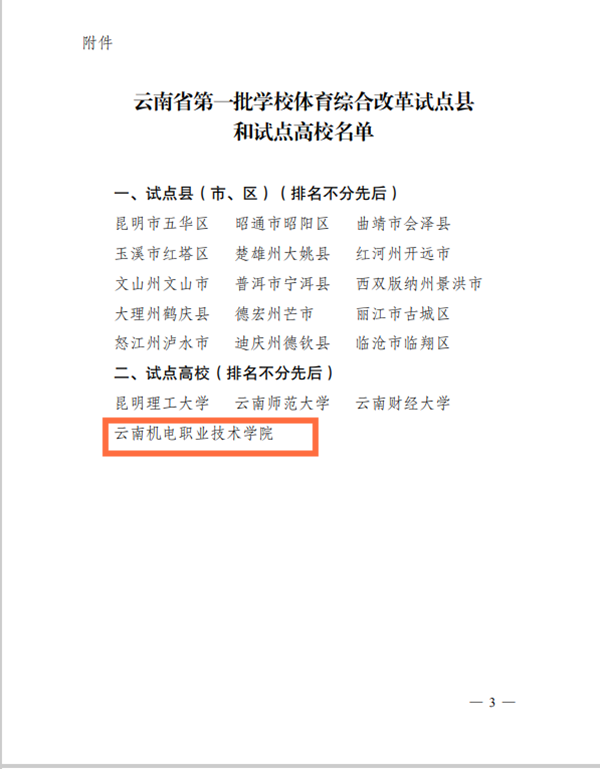 附件:云南省教育厅关于公布第一批学校体育综合改革试点县和试点高校名单的通知