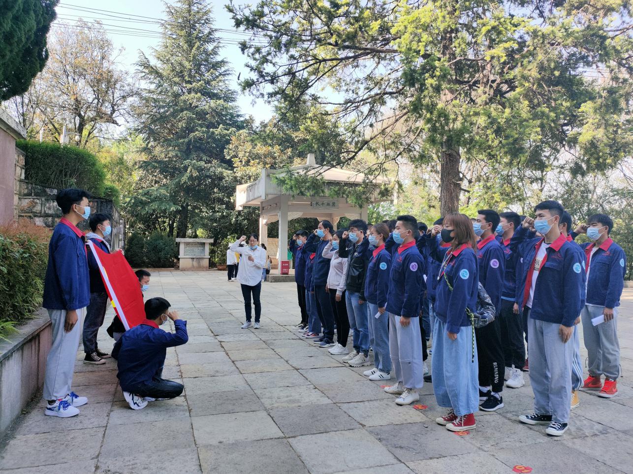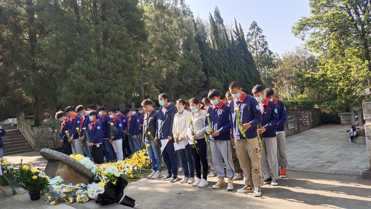 初踏入昆明黑龙潭烈士陵园,沉重而庄严的气氛迎面而来,师生们整齐列队来到了英雄纪念碑前。