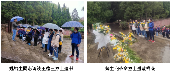 接下来党支部宣传委员魏绍生同志给大家诵读了王德三同志在狱中给父亲写下的感人肺腑的遗书。王德三在狱中留给父亲的遗书,字字铿锵,一名革命战士视死如归的浩然正气跃然纸上。他们对革命的忠诚之心与大无畏的牺牲精神让大家无比敬佩。所有同志怀着崇高的敬意,向烈士们鞠躬默哀表达哀思,依次向先烈们敬献鲜花,告慰英灵。