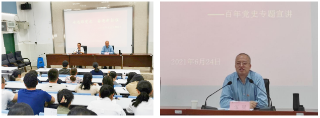 伍星院长强调,今年是庆祝党的百年华诞的重要时刻,开展党史学习教育正当其时,十分必要。他结合自身经历,从开展党史学习教育的重大意义、党的百年奋斗历程、改革开放40年以来的成就、党和国家领导人的重要论述、云南的发展历程等多个方面进行了一场生动形象的宣讲。紧紧围绕“为什么学、怎么学、学什么”对党史学习进行了深入解读。教育全院师生要牢记党的历史,明确党史学习教育的四个要求,达到学党史、悟思想、办实事、开新局的目的,学懂、弄通、做实党的创新理论,树立正确的党史观、历史观;要刻苦学习、努力工作,听党话、跟党走,传承革命奋斗精神,提升职业道德,找准工作定位,为学院高质量发展再开新局、再谋新篇。
