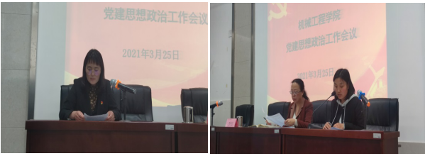 随后,团总支书记崔欢欢汇报了2020年意识形态及思想政治工作,一是加强理论武装,提高学院师生对意识形态工作重要性的认识,二是建立责任体系、压实意识形态工作责任,三是建立工作机制,加强舆情管控。2021年,学院团总支将强化意识形态队伍建设,完善意识形态工作机制,细化意识形态工作制度。