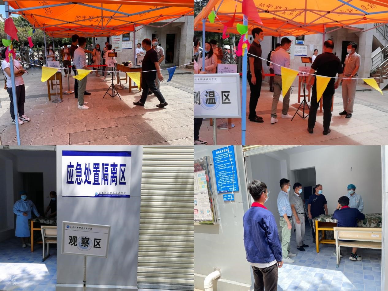 为贯彻落实《国务院应对新型冠状病毒感染肺炎疫情联防联控机制关于做好新冠肺炎疫情常态化防控工作的指导意见》(国发明电〔2020〕14 号)精神,保障广大考生和考试工作人员的生命安全和身体健康,保障第62次全国计算机等级考试安全有序组织,根据《云南省招生考试院关于严密组织2021年下半年第62次全国计算机等级考试的通知》(云招考院〔2021〕59号)文件要求(以下简称《通知》),我院于2021年9月23日中午进行了防疫演练,参加此次演练的有:学院防疫办公室、后勤保障处、保卫处、学生处、教务处、信息工程学院等30余名教师及30名学生志愿者。