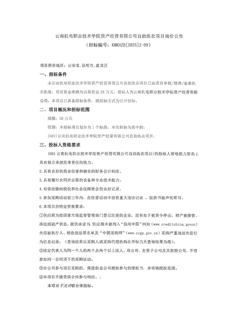 小狐狸在线资产经营有限公司自助洗衣项目询价公告