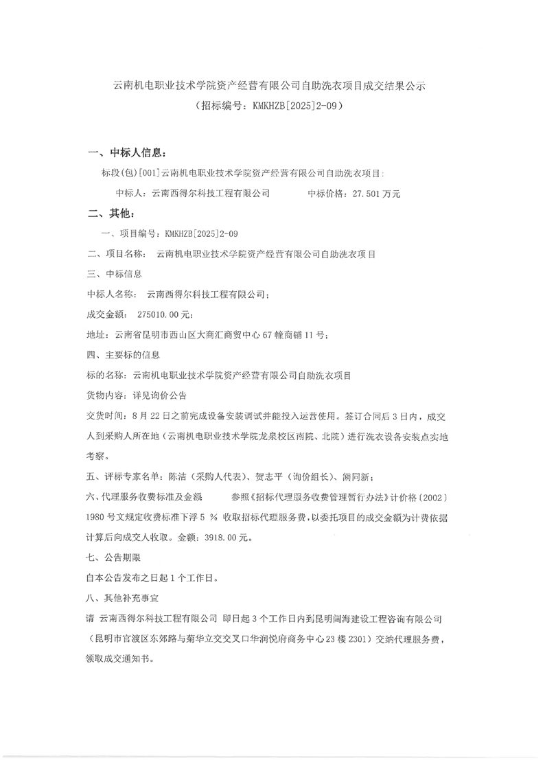 小狐狸在线资产经营有限公司自助洗衣项目成交结果公示